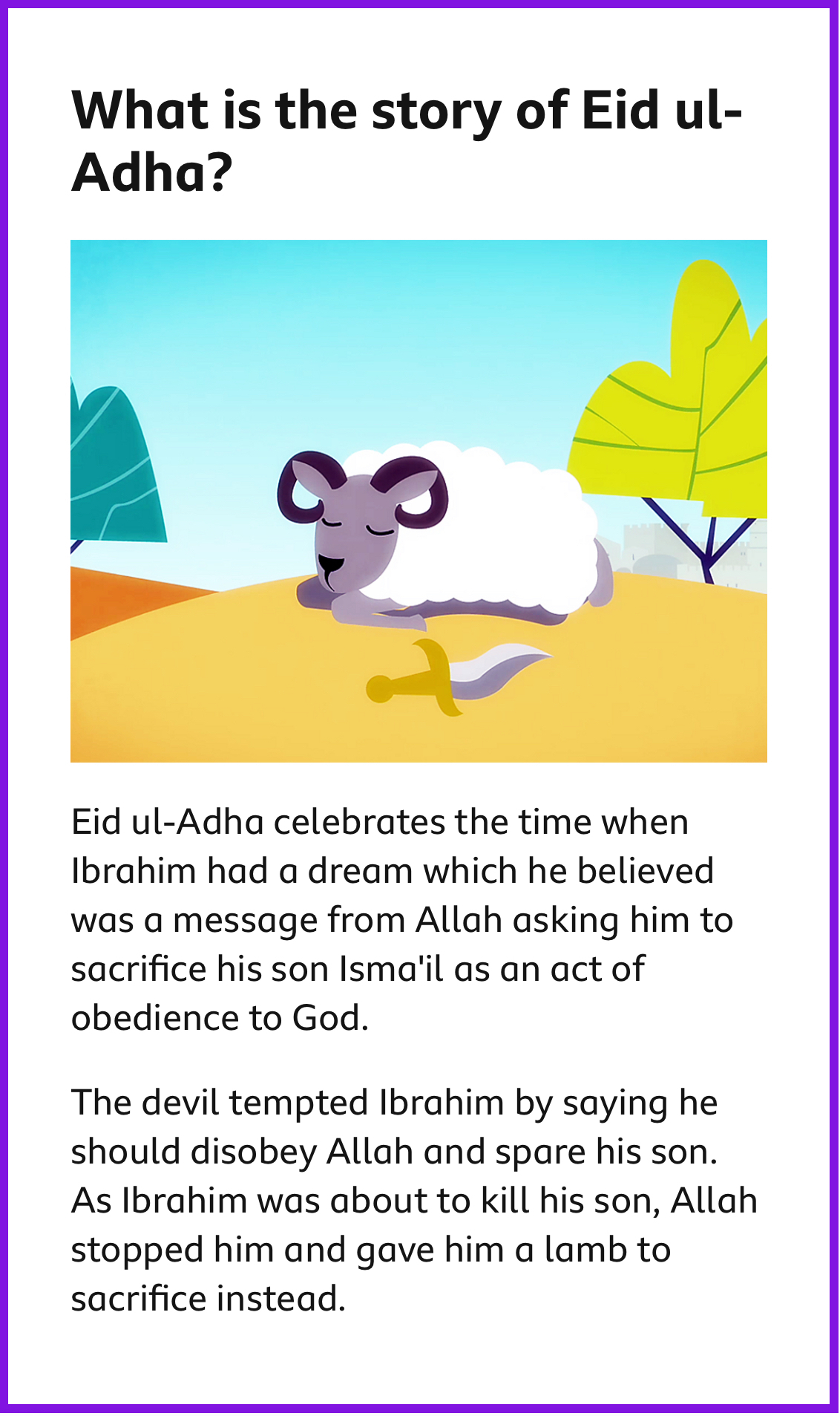 You can read more about the festival, celebrated by over 2 billions Muslims* worldwide, here on wikipedia, with BBC Bitesize offering friendly illustrations like the one below.