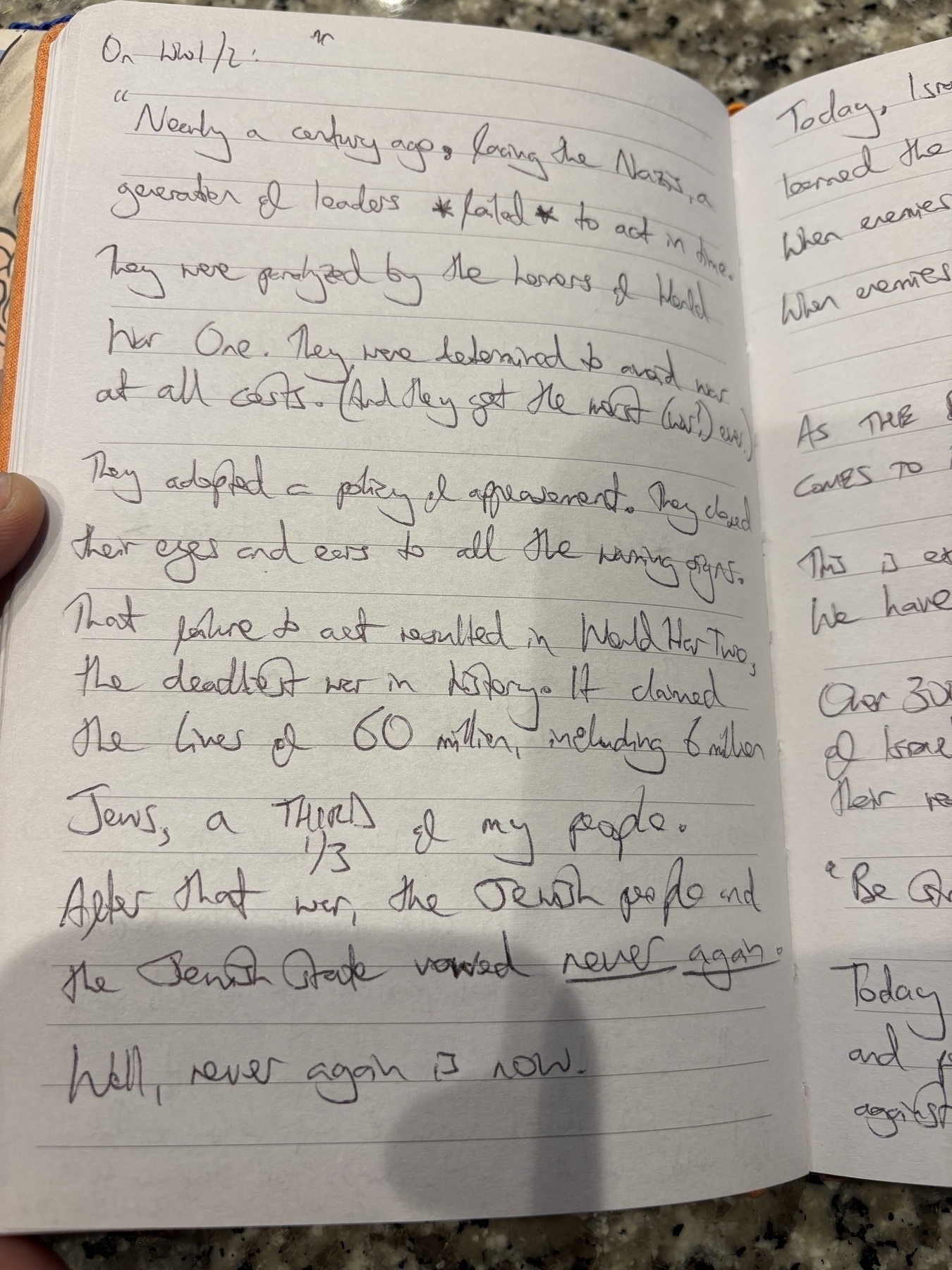I was up in the early hours a couple of mornings ago, and scribbled 2 pages of notes on Benjamin Netanyahu’s speech as he announced Operation Rising Lion.